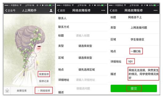 在线申请网络故障维修,节省维修响应时间,并且方便记录,缩短了服务周期。